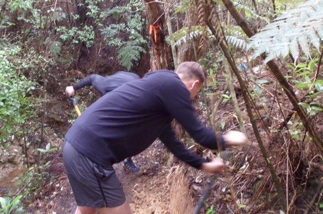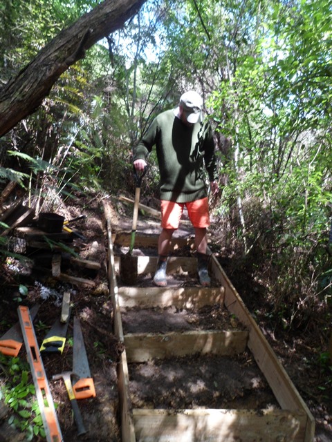 While the steps were progressing, Mark and Rob worked on widening the track leading up to the steps that Alan, Sam and Simon had been working on.