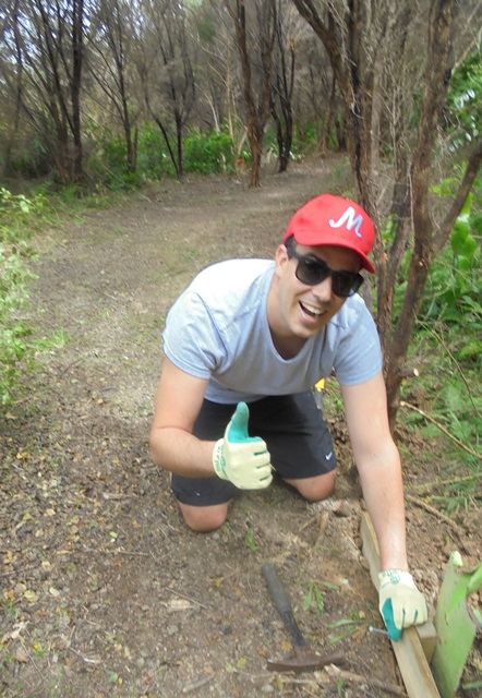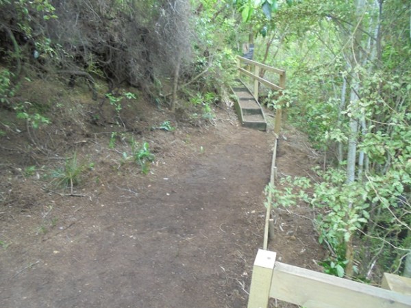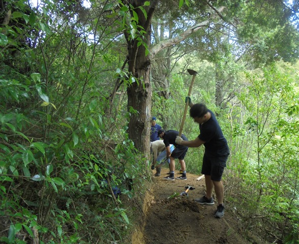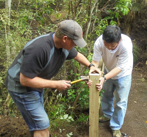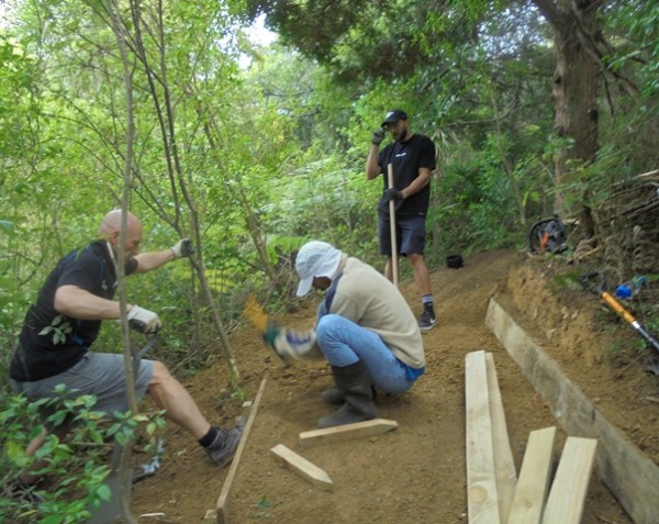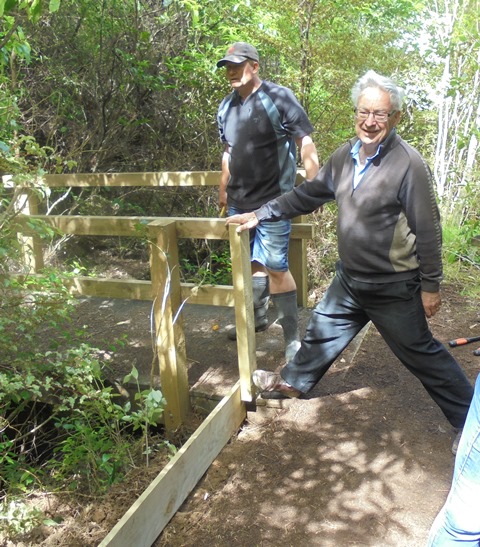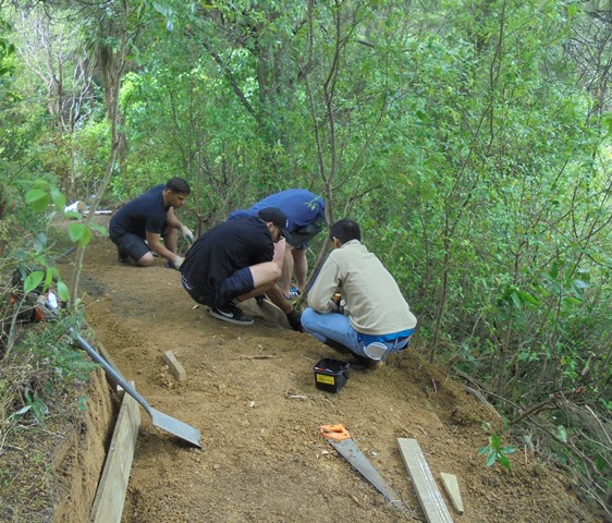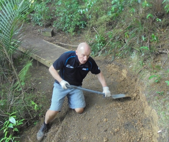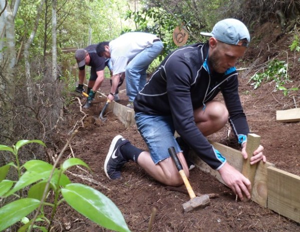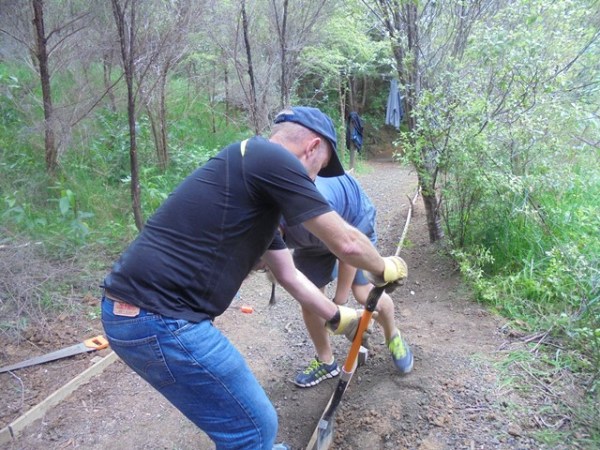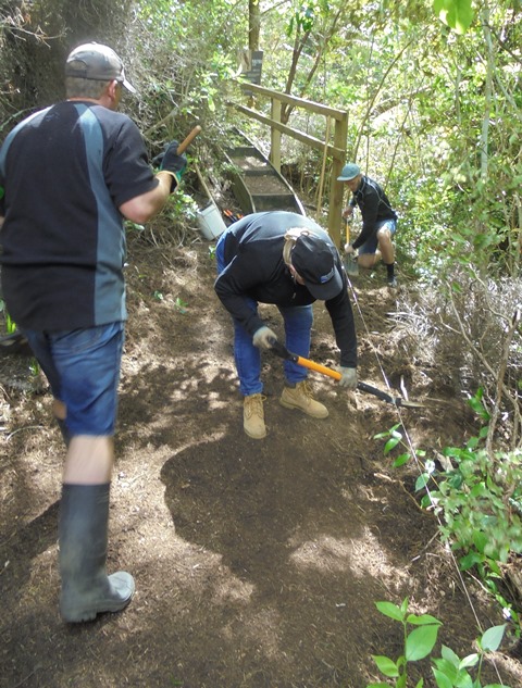 The second team worked on another section of track that runs along the edge of a gully. We wanted to widen the track and install more retaining boards to improve the appearance the track and make it easier to maintain.