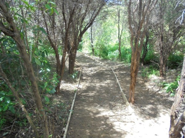 The plan was to reorient the track through the bush and install side boards to clearly define the track edges to make it easier for visitors to stay on the track. The first task was to measure and dig out channels for the boards.