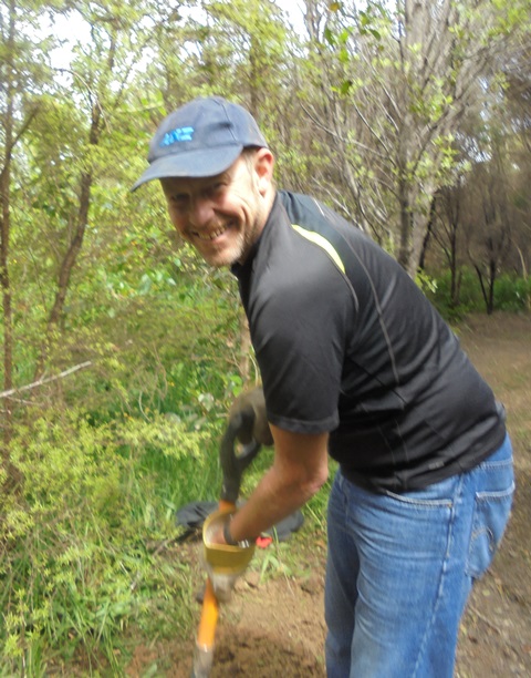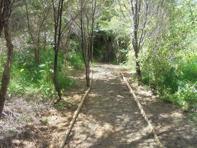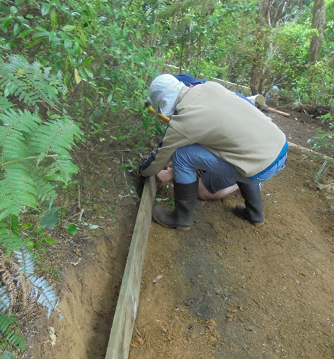 The plan was to reorient the track through the bush and install side boards to clearly define the track edges to make it easier for visitors to stay on the track. The first task was to measure and dig out channels for the boards.