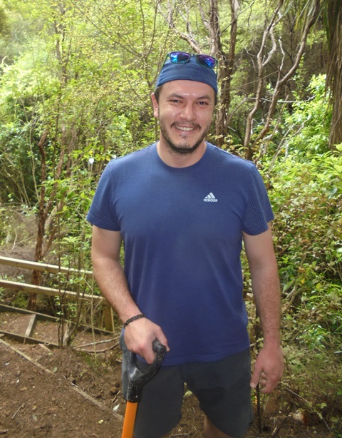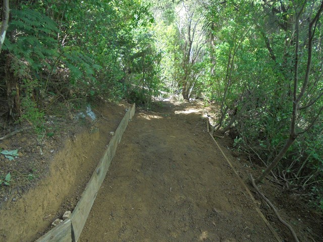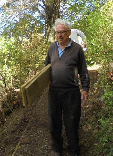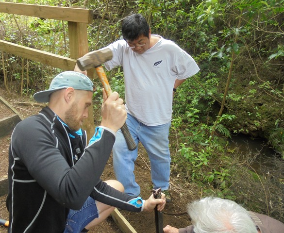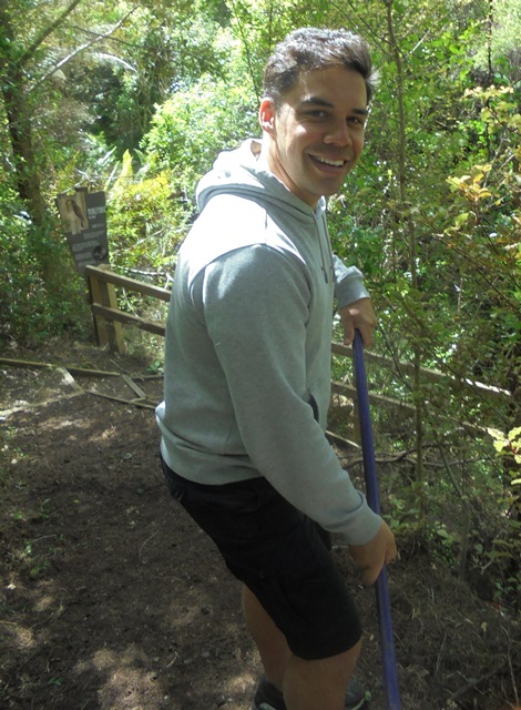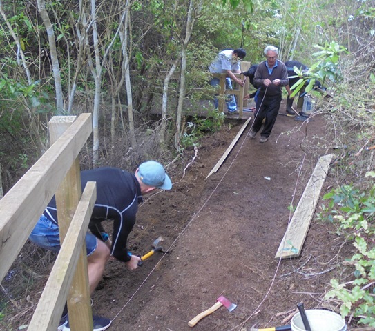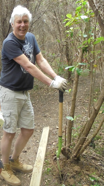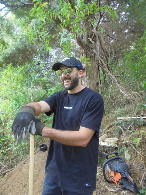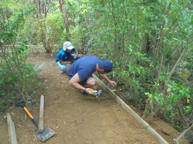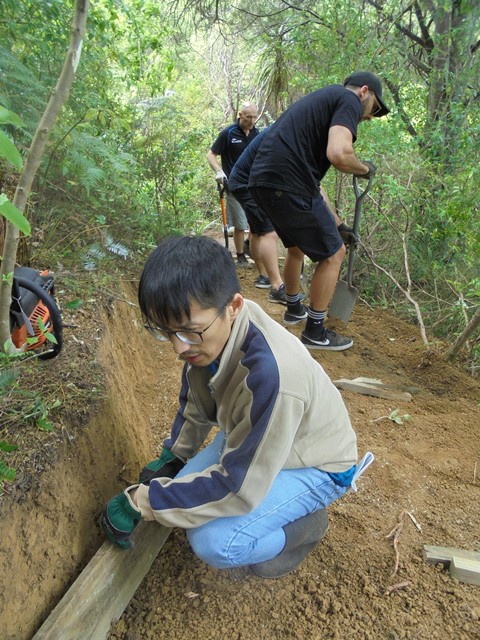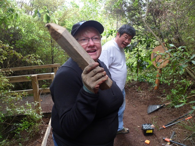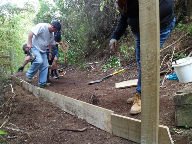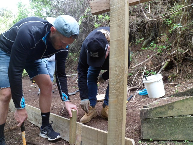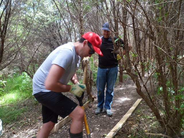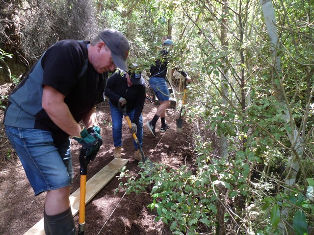 The second team worked on another section of track that runs along the edge of a gully. We wanted to widen the track and install more retaining boards to improve the appearance the track and make it easier to maintain.