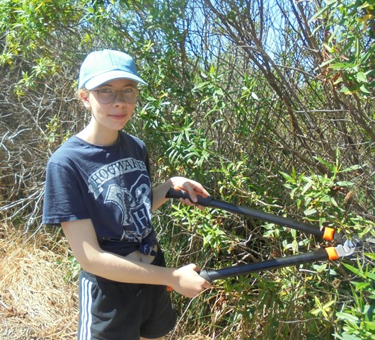 We had a warm, wet winter and an unusually wet spring which means that everything is growing—good stuff and weeds! So the task for the day was for the students to trim back vegetation that was growing over the main road to enable clear passage for traffic over the summer months.