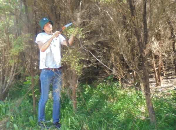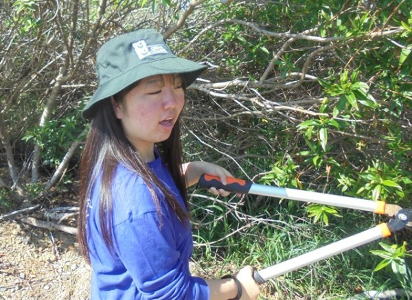 The two groups met near the middle and turned down one of the walking tracks to continue the trimming work.