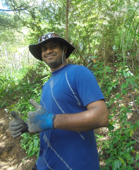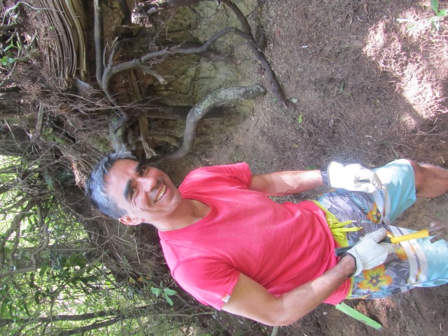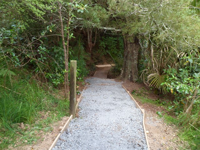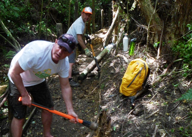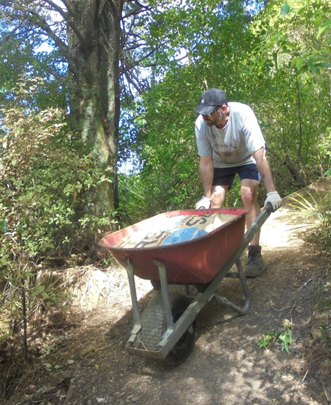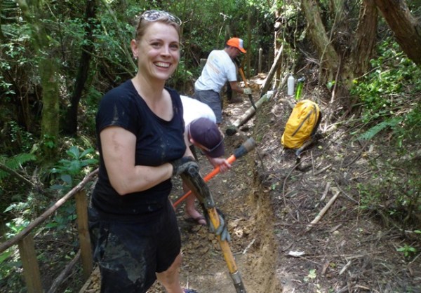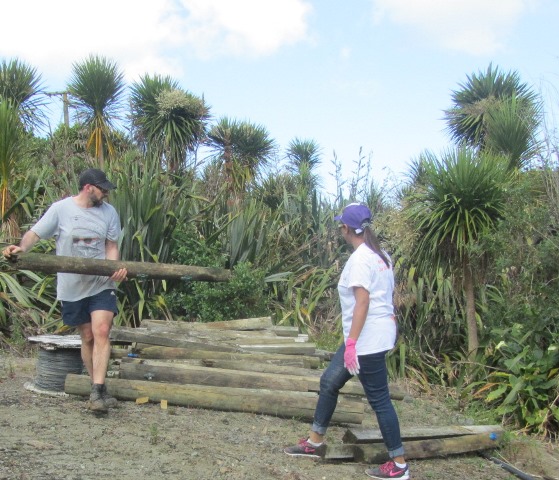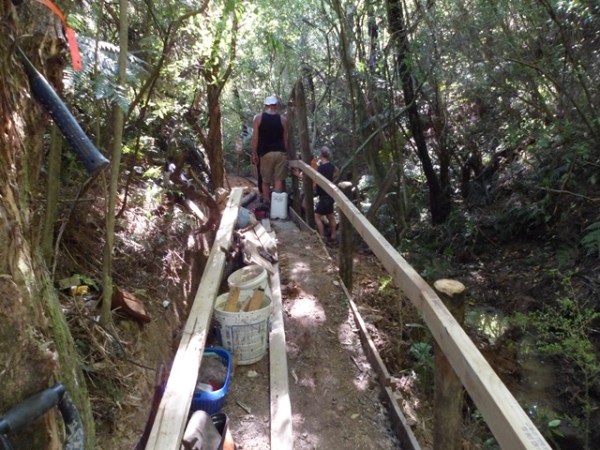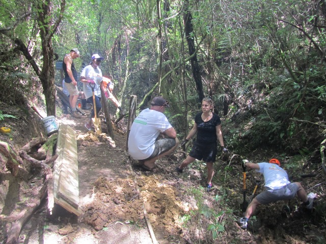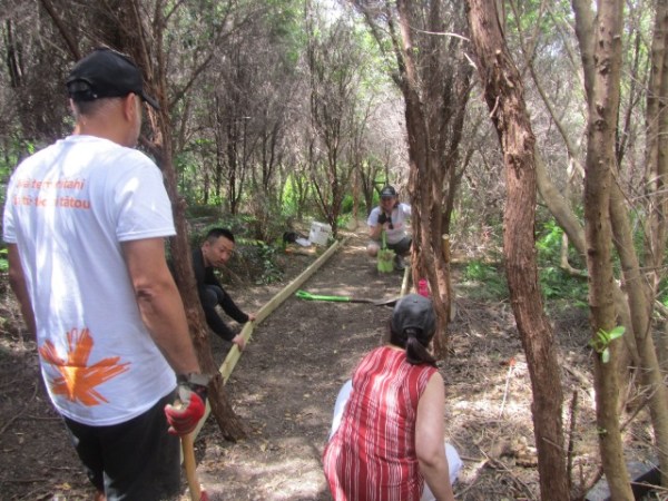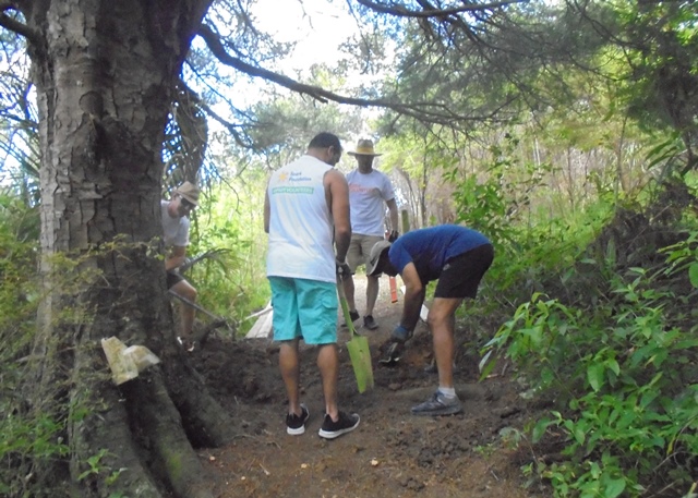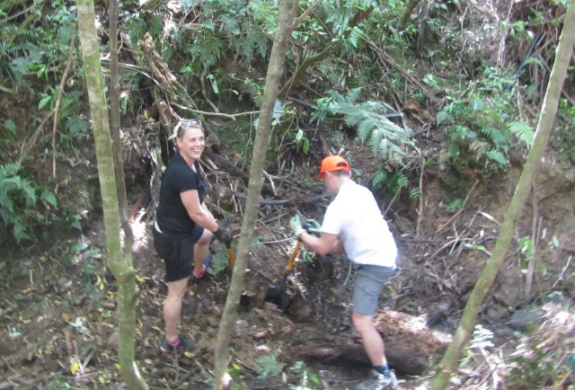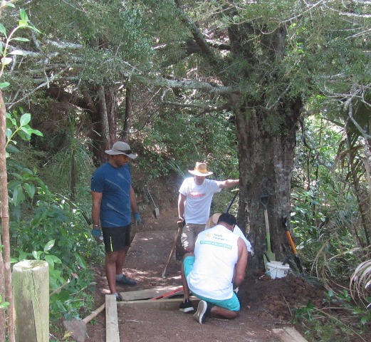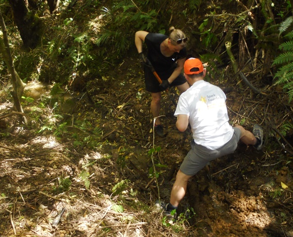 First the team had to relocate some small self-seeded nikau seedlings and they then proceeded to widen and level the track.