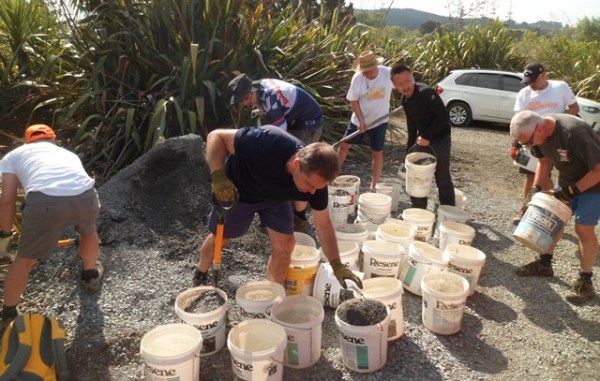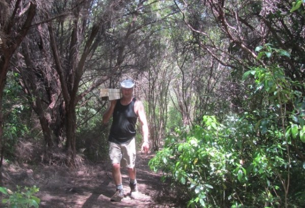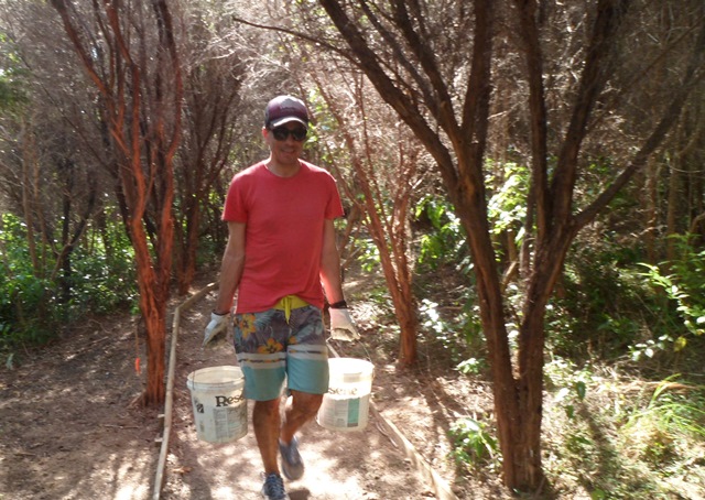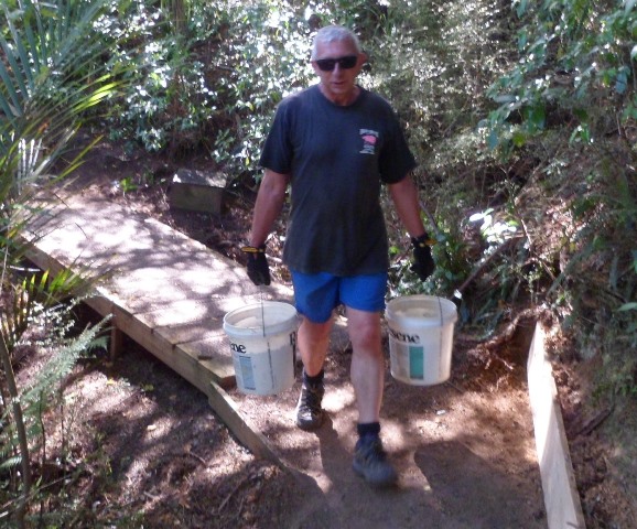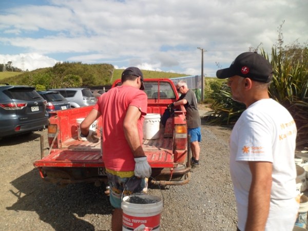 The buckets were loaded onto the ute and taken up to the end of the track.
