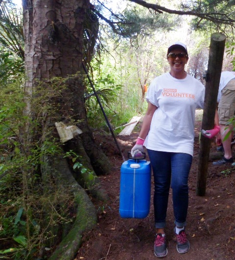 In addition to the historic pa site at the top of the CUE Haven, there is also evidence of another historic Maori settlement site in the middle of the property by the rock pools in the stream. We want to create a space here where visitors can spend time relaxing and also reflecting on the history of the property. Some time ago we had installed an inspirational sign and a small bench in this an area and the task allocated to this team today was to expand the area and install another bench.