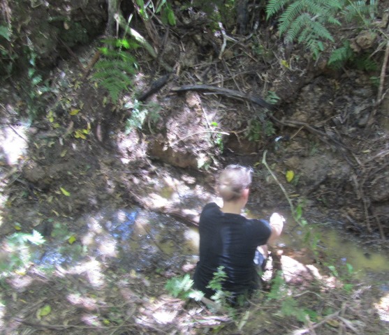 It was a messy job but they were rewarded by seeing several fish in the stream.