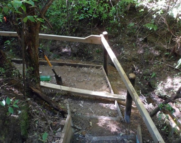 Once they had determined the layout of the steps they cut and installed the risers which were secured with pegs.