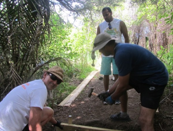 In just a few minutes they cleared the weeds and the team went on to work on the walking track.