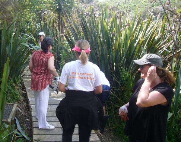 Once they finished trimming along the boardwalk, part of the team joined the track teams while the others moved up to the top of the property and worked down the main walking track. Thanks to all their efforts, the walking tracks are more comfortable to navigate.