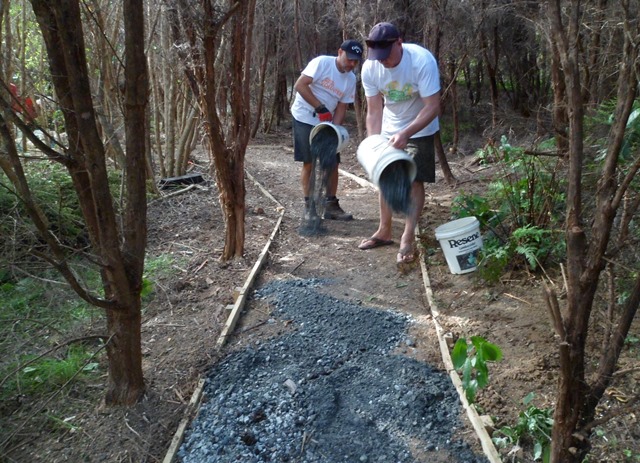 The teams wanted to finalize the sections of track they worked on and the last step is putting down a layer of gravel to make the track easy to use in all kinds of weather.