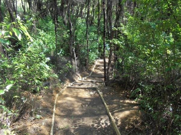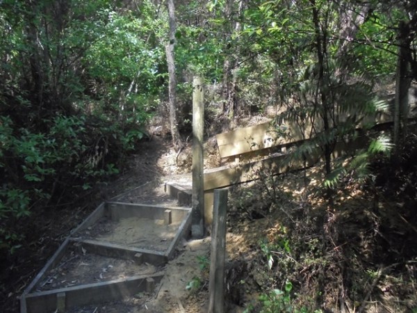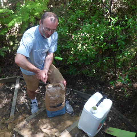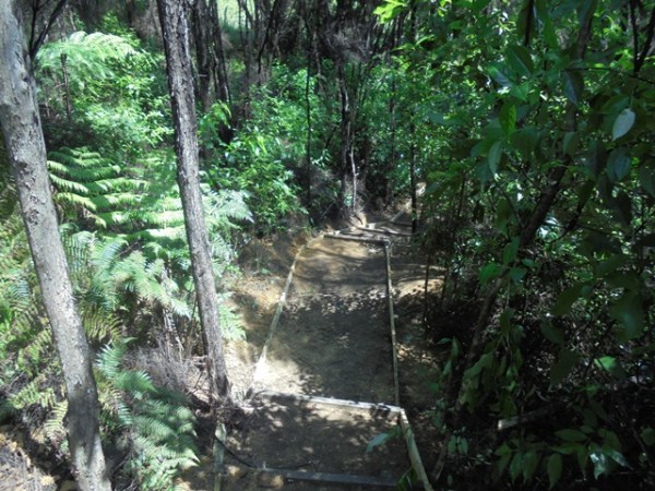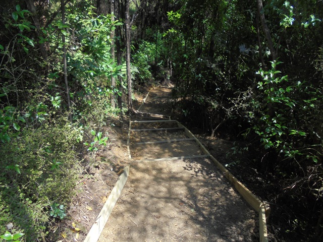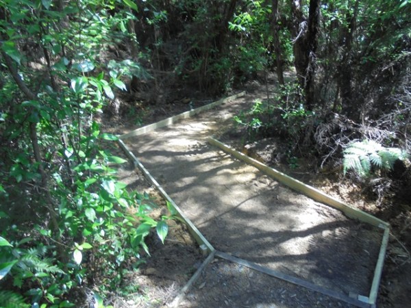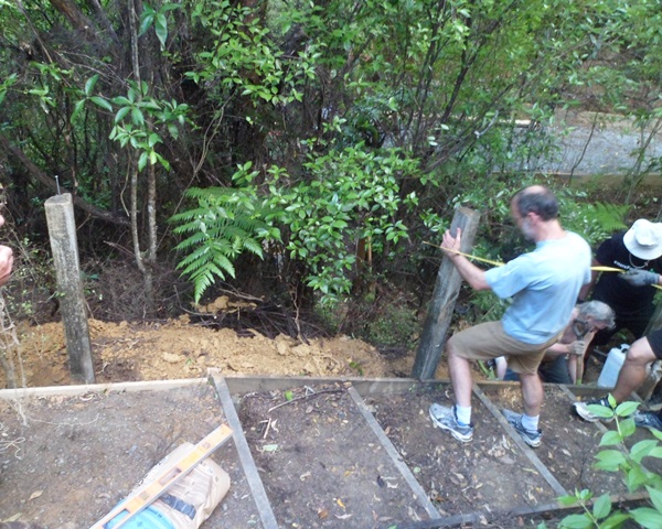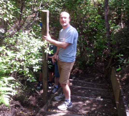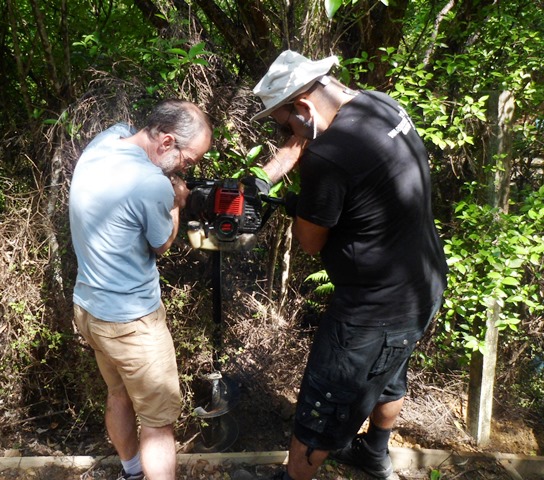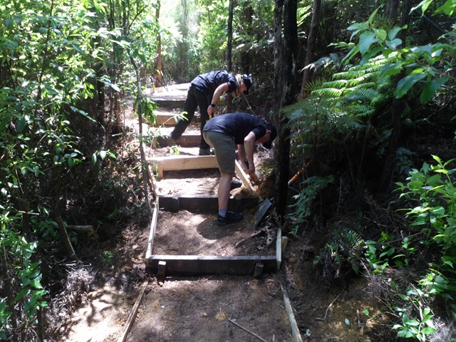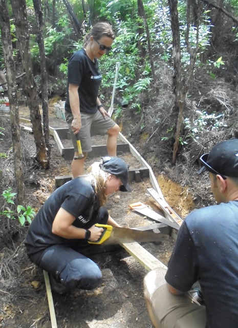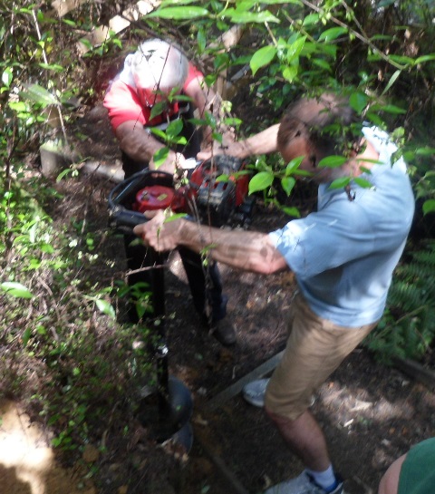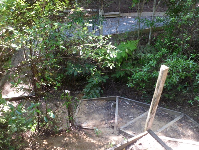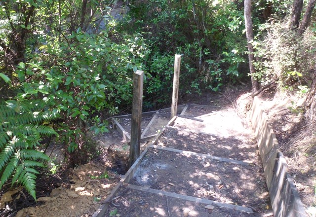 Digging the holes was a real challenge. In addition to tree roots they also had to contend with hard sandstone as the steps lead down to the stream.