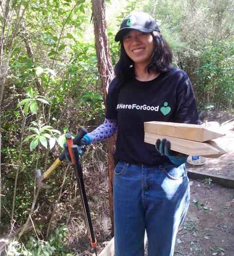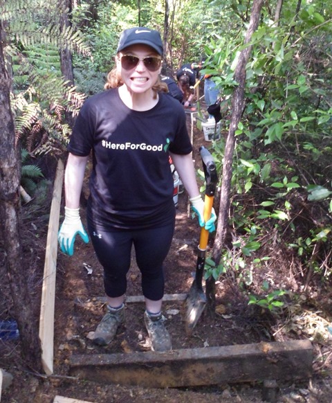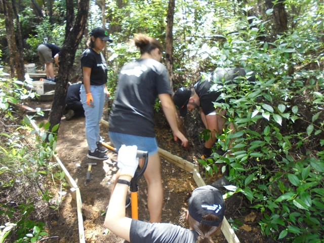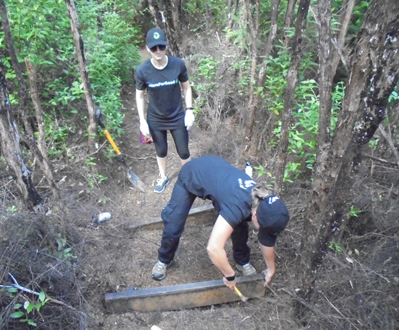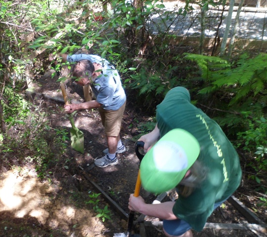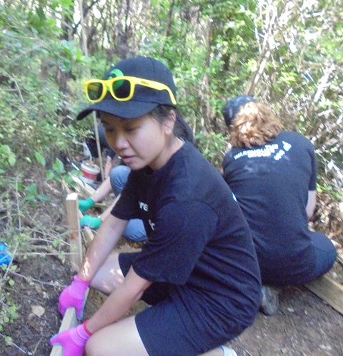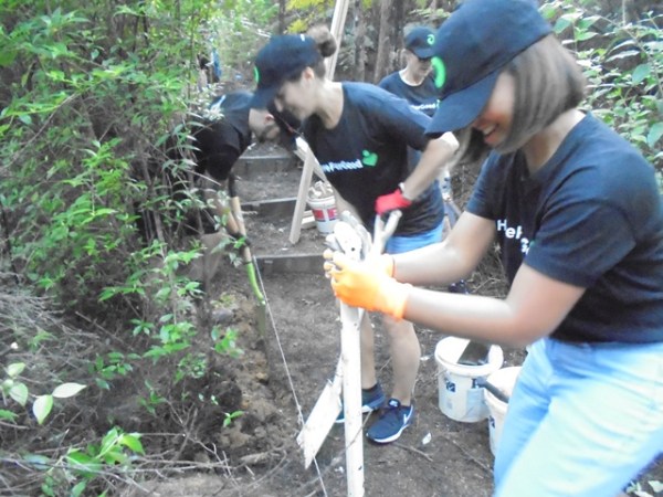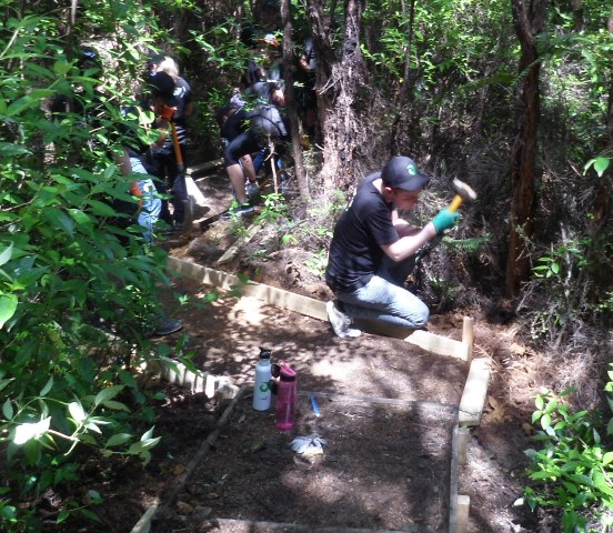 Because of the size of the group, we broke into three teams. Two teams worked on widening a long section of track and the third team worked to install railings on a set of steps a little further up the same track.