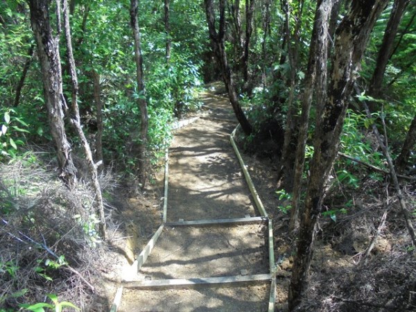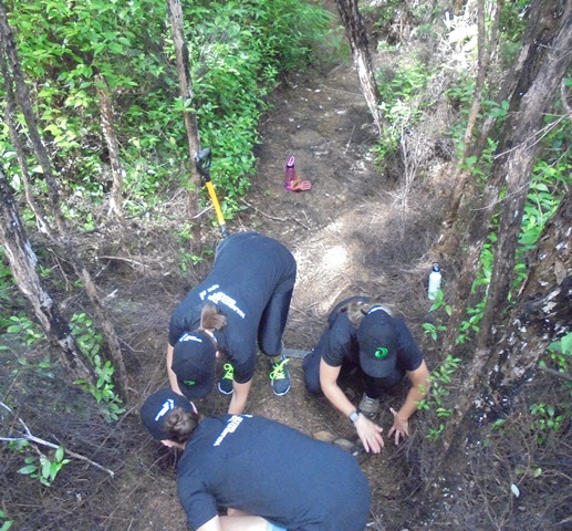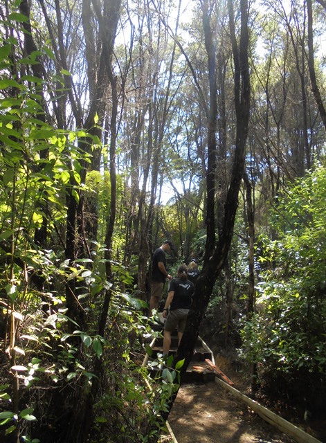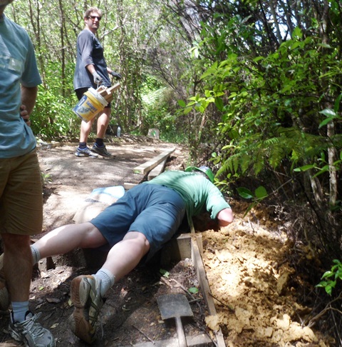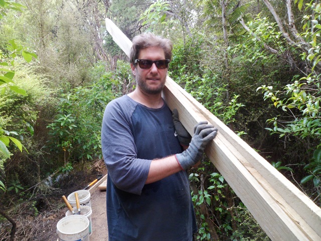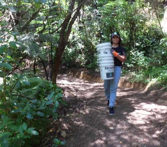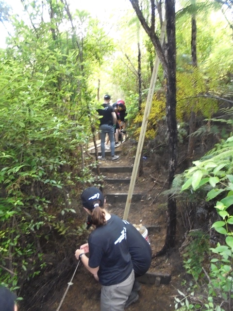 The plan for the day was to work on a variety of improvements to an old section of walking track. Other teams have been upgrading the track and we wanted to continue that work. Once in the field, we carried all the gear down to the work site and went to work.