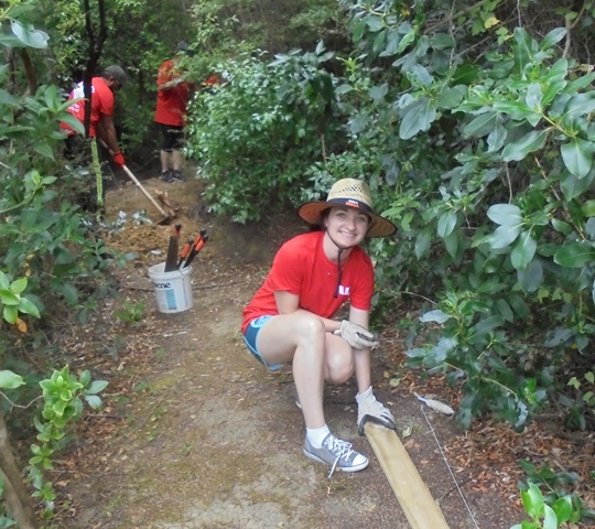 The team had a tough assignment and we really appreciate their energy and enthusiasm to make the track much better. Future teams will finish off installing steps and continuing with the side boards.