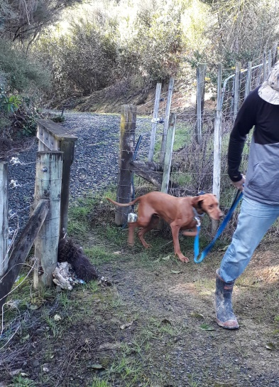 After the dog receives the shock, they go through the run until they avoid the kiwi, demonstrating that the training has been effective.