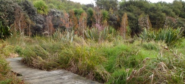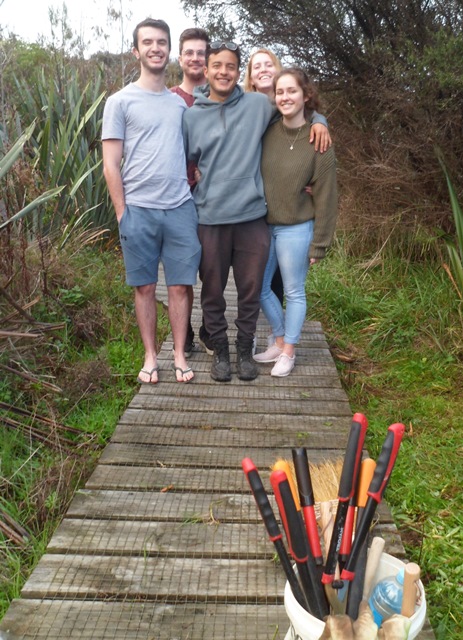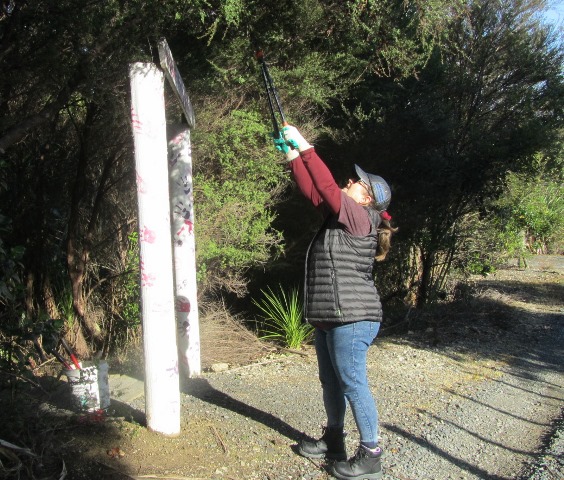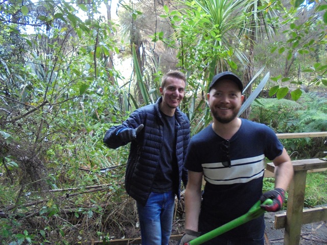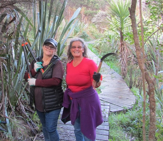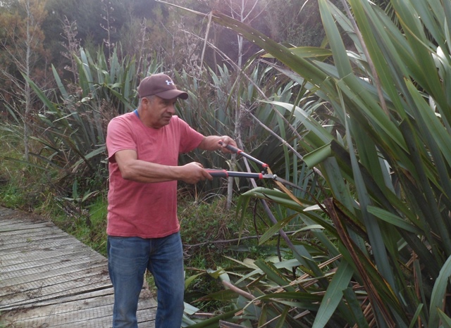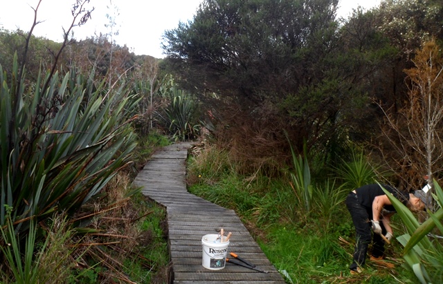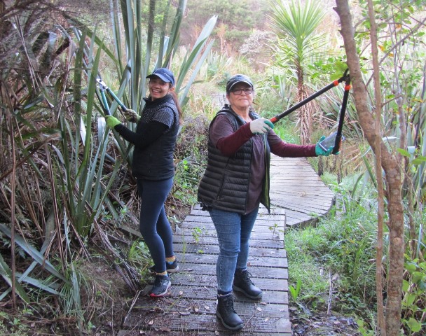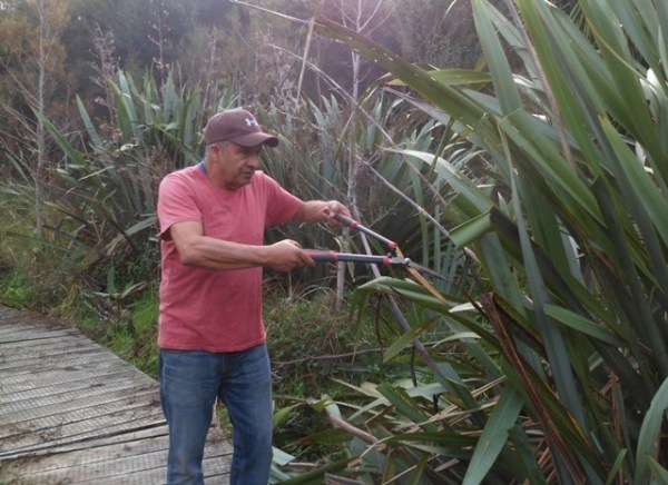 The track work planned for the day was to trim vegetation that had grown up along the boardwalk. The team went to work with shears, loppers and flax cutters.