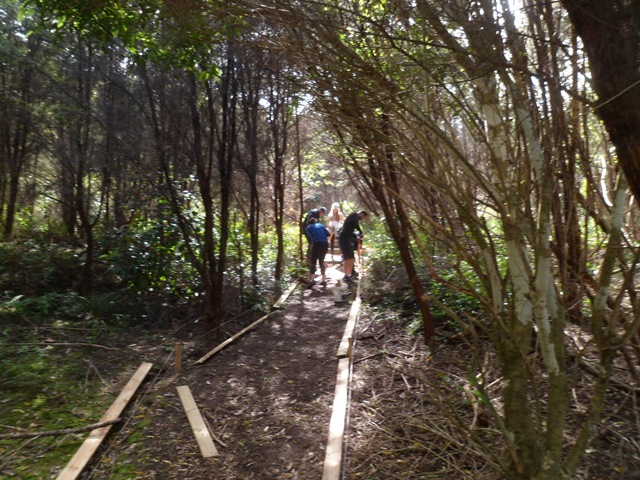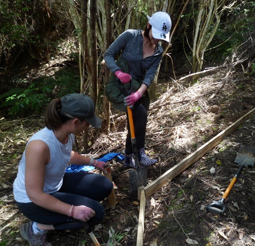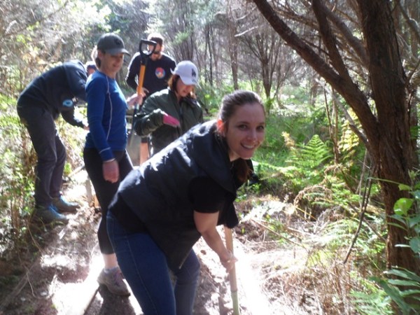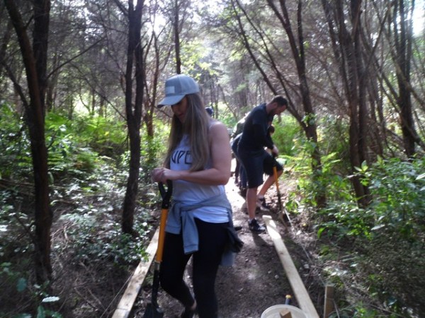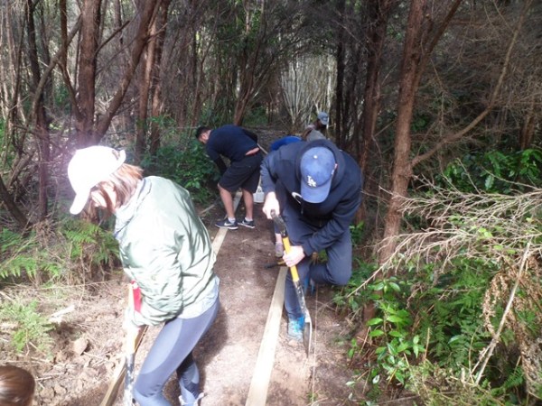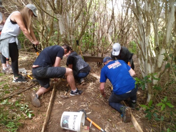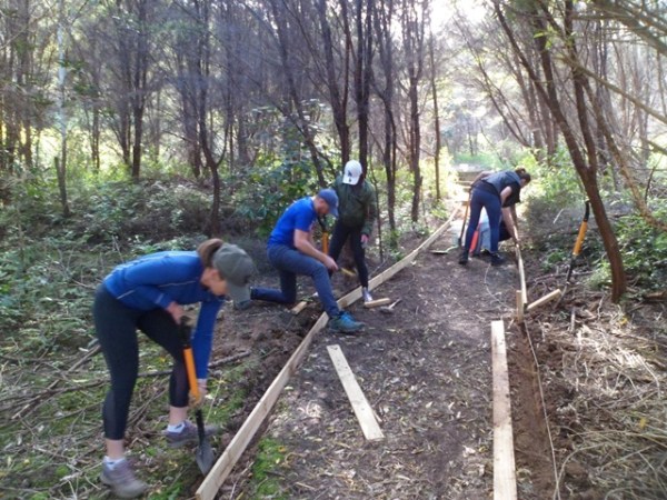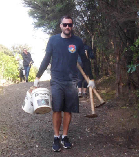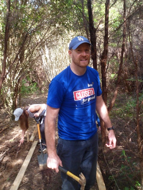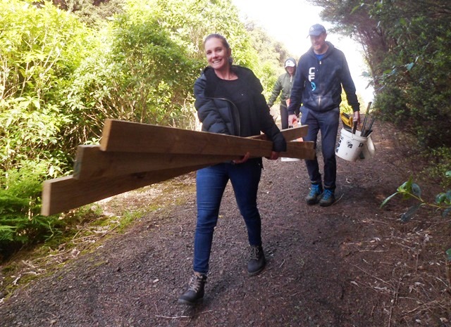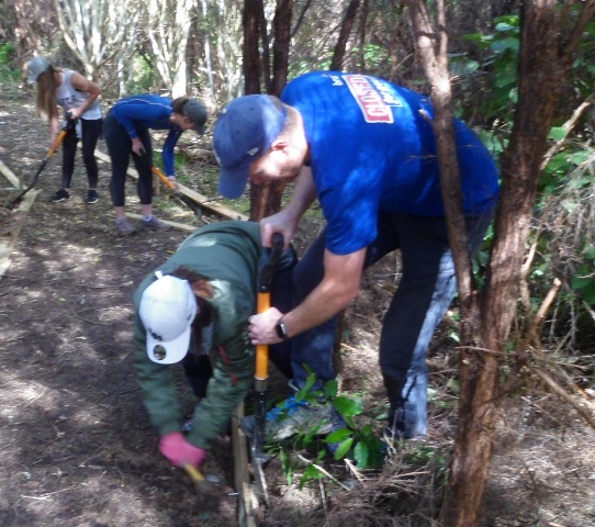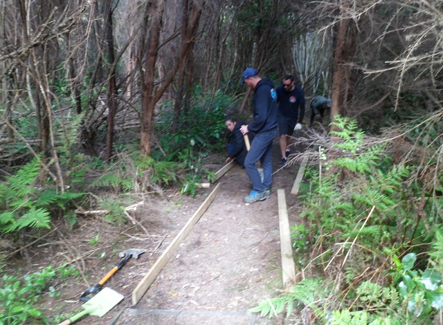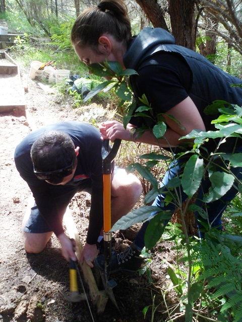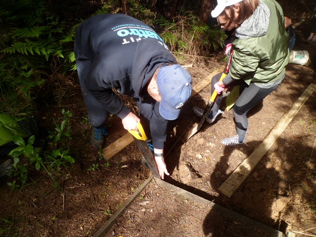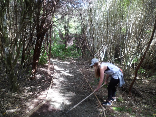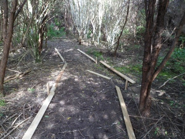 The plan for the day was to work on a variety of improvements to an old section of walking track. We wanted to widen and level the track and install some side boards to improve the appearance. The track runs along a sloping section of ground and curves at almost a right angle at one point.