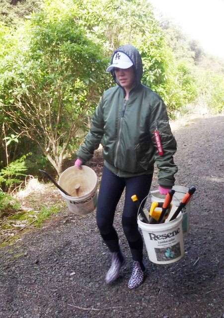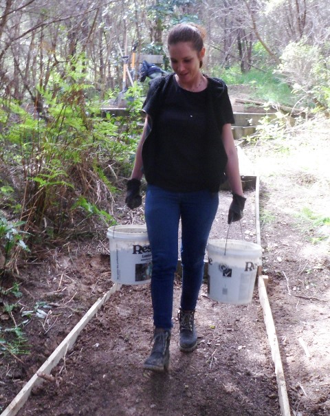We drove up as close to the work site as possible and then carried the buckets down to the track.