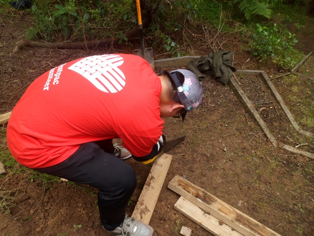 The team could then install side boards. The boards needed to be cut to size and then nailed in place.