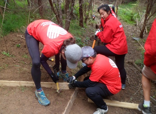 One team tackled the job of putting side walls along a section of track to protect against erosion. The first task was to figure out the best route for the improved track section.