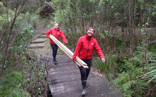 They found some totara seedlings growing on the pathway and “rescued” them by replanting them in the bush.
