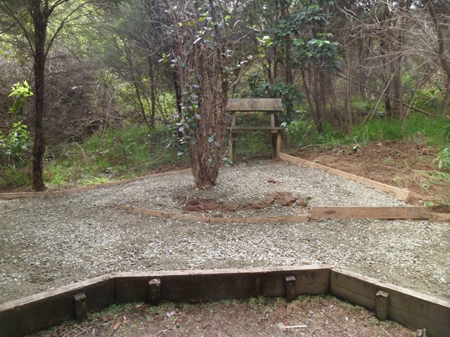 They studied the area and decided that a small step was necessary to access the bench and went to work digging out the area. There was also a tree near the bench that the team wanted to keep in place and they had to work around it.
