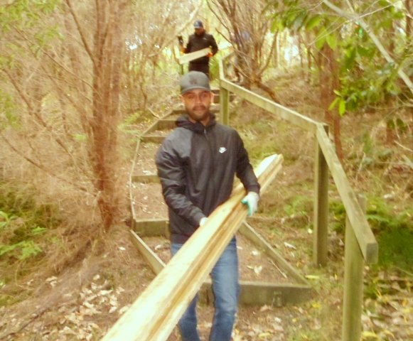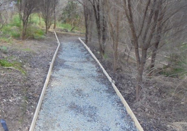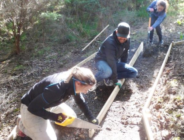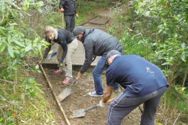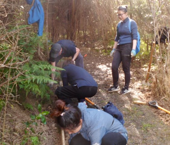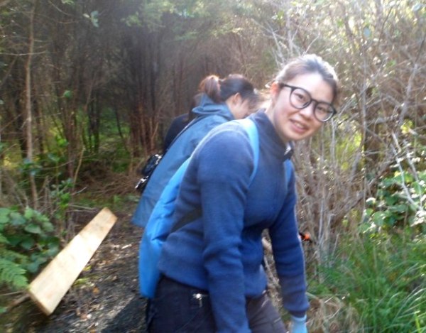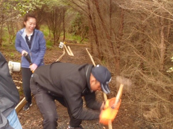 One team worked on improving a long section of track that will become a main accessway to the viewing platform. Their main job was clearing and levelling the track and installing side boards. The team picked up from where earlier groups had left off.