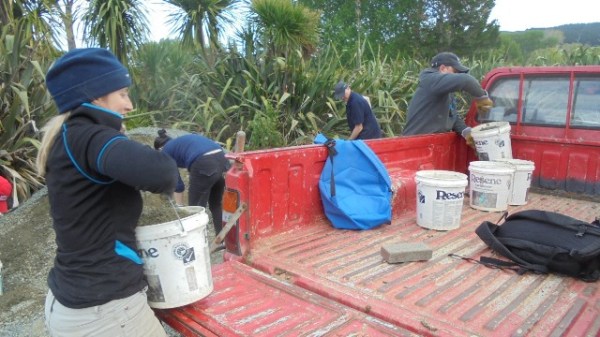 The group finished off the day by laying down a layer of gravel on the new section of track they had completed. We loaded up buckets full of gravel down in the car park.