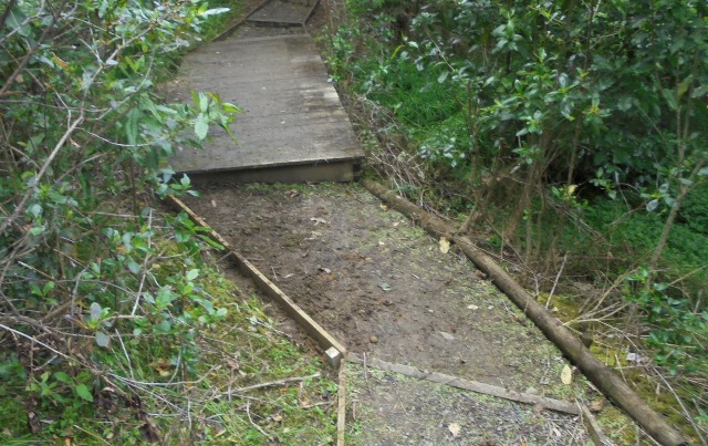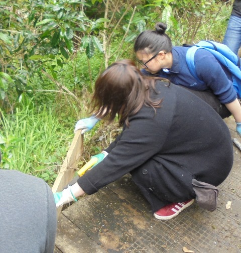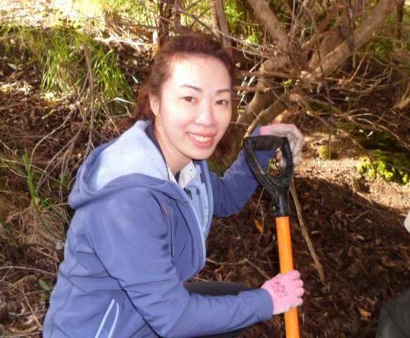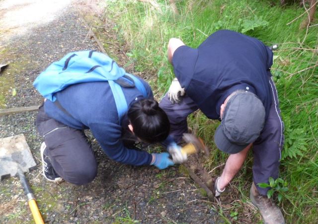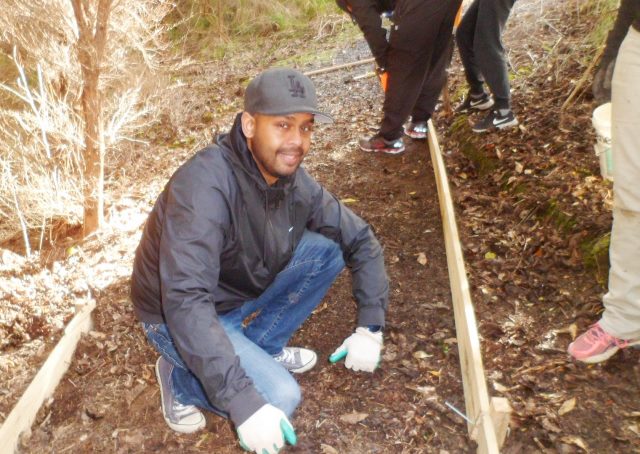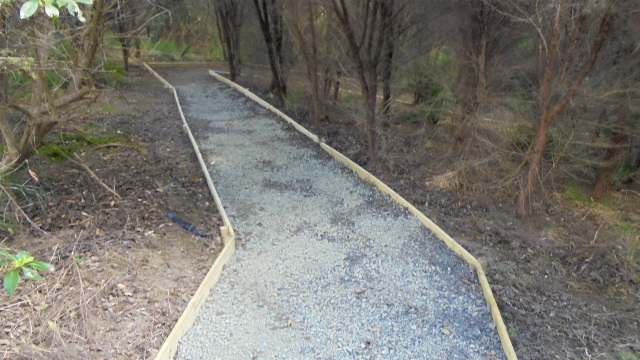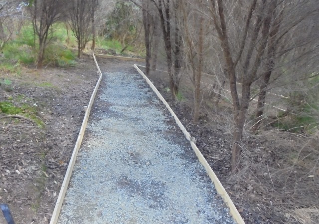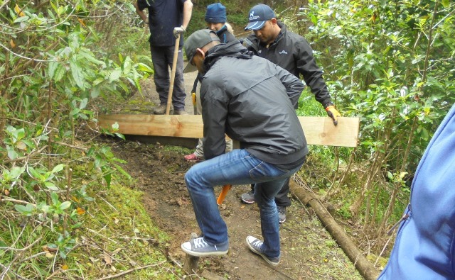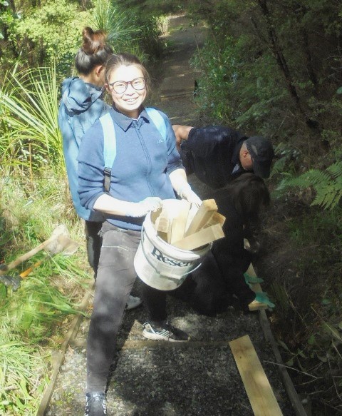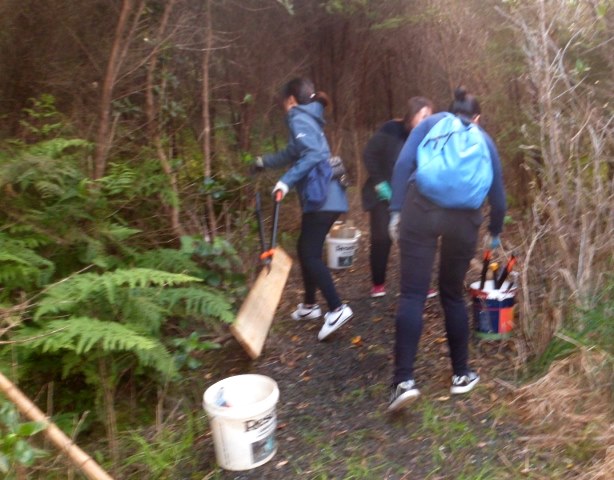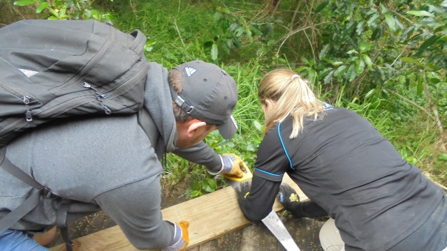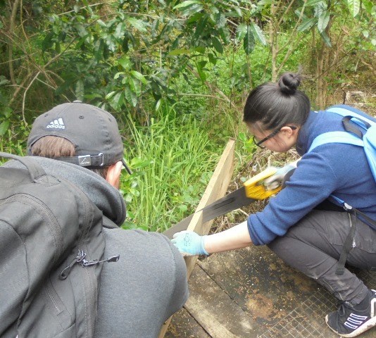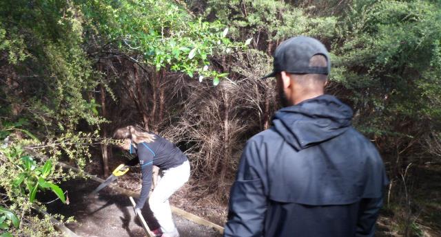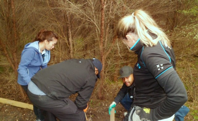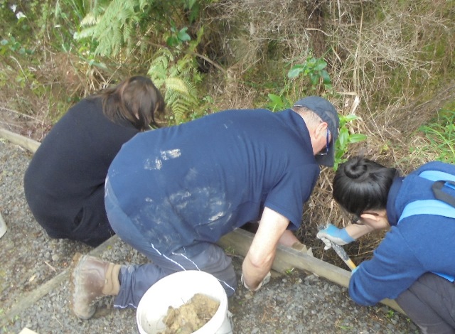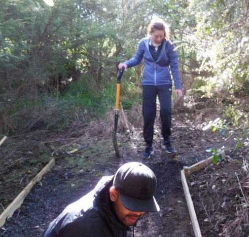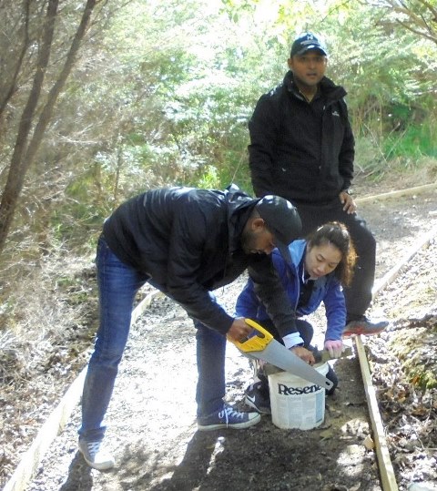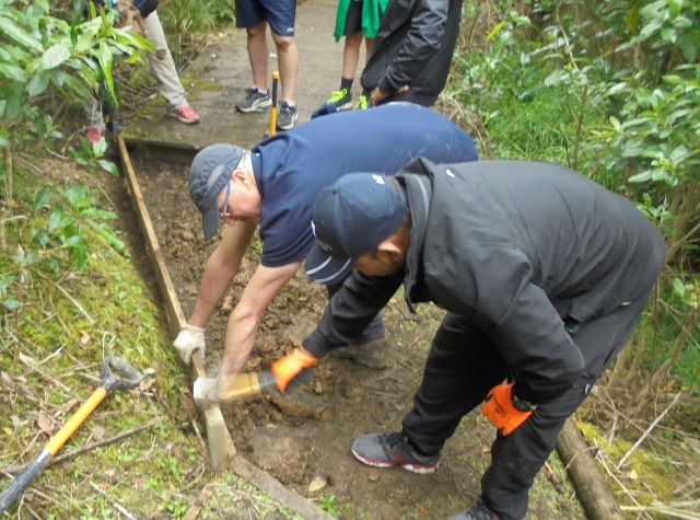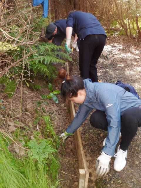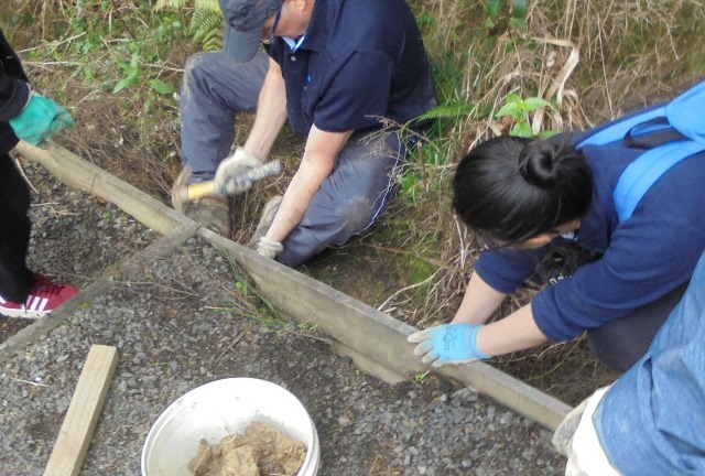 One team worked on improving a long section of track that will become a main accessway to the viewing platform. Their main job was clearing and levelling the track and installing side boards. The team picked up from where earlier groups had left off.