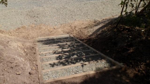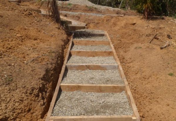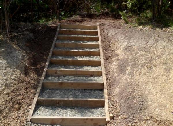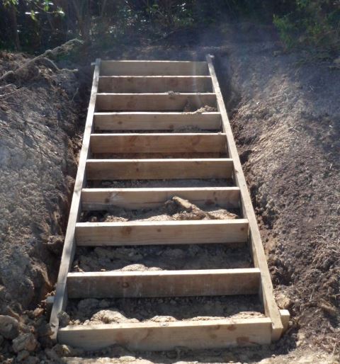 We then drove up to the work site and the gravel was spread on the steps.