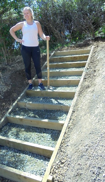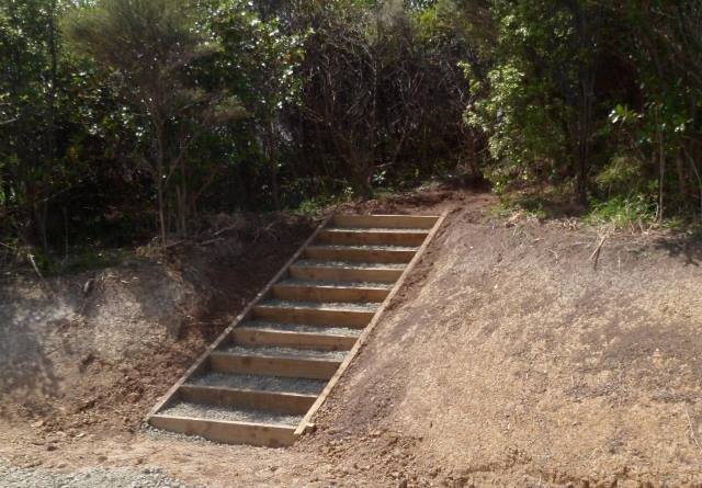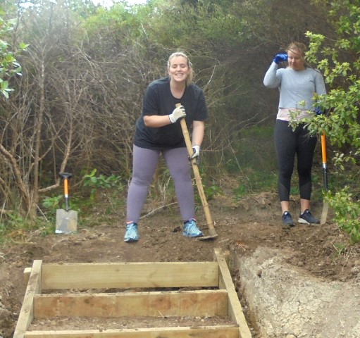 The plan for the day was to continue to work on fixing up the walking track approaches to the viewing platform by building on the work that previous team had done. The work involved finishing off one set of steps and installing some new ones.