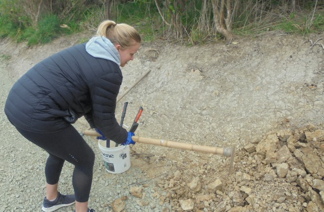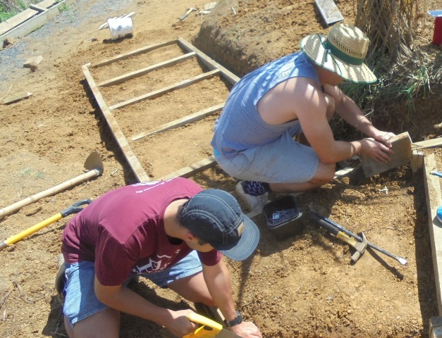 The job involved breaking up the hard soil and smoothing it to make the steps even. It was a challenging task because the dry weather had baked the clay and it was rock hard.
