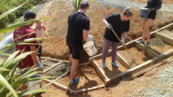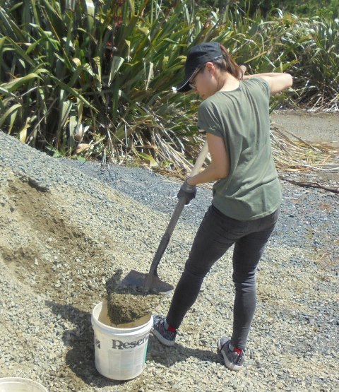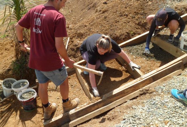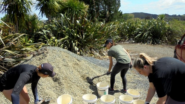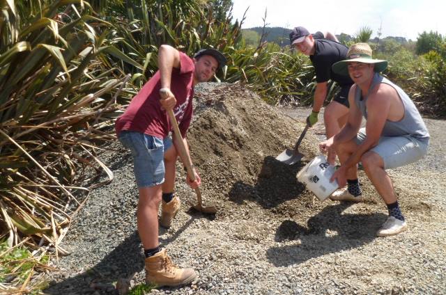 Everyone worked together to dump the gravel and smooth it out.