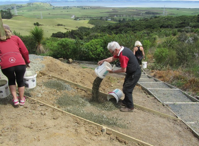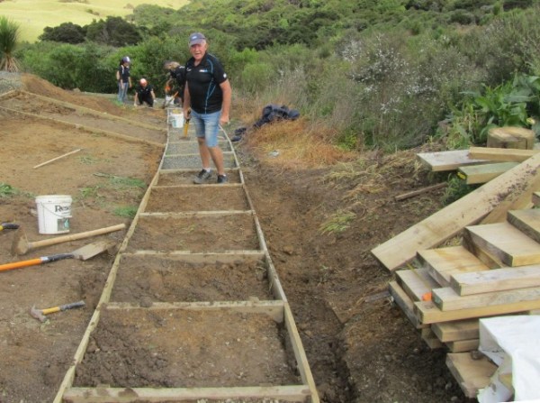 In the meantime, the team working to fix the top part of the walking track finished their work and came down to join this team and worked on the other end of the section, joining up the track section to a new set of steps down from the platform area.
