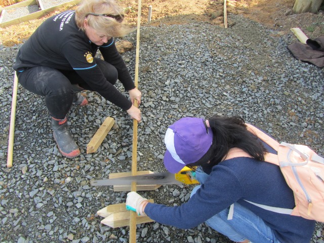 During the construction of the viewing platform it was necessary to drive heavy equipment over the track which resulted in damage to some of the side boards and also affected the alignment of the track. One team went to work repairing and realigning the track.