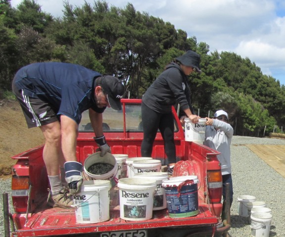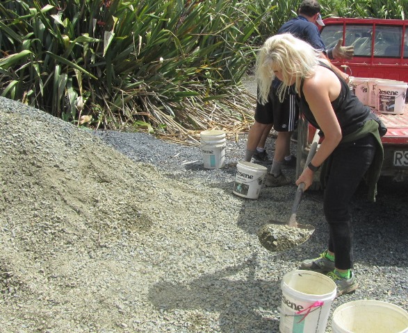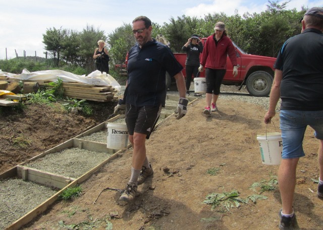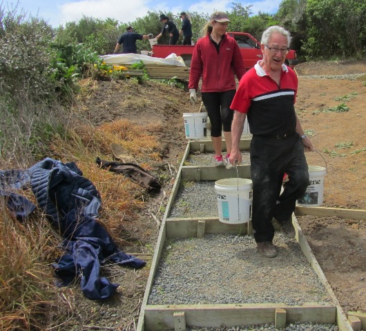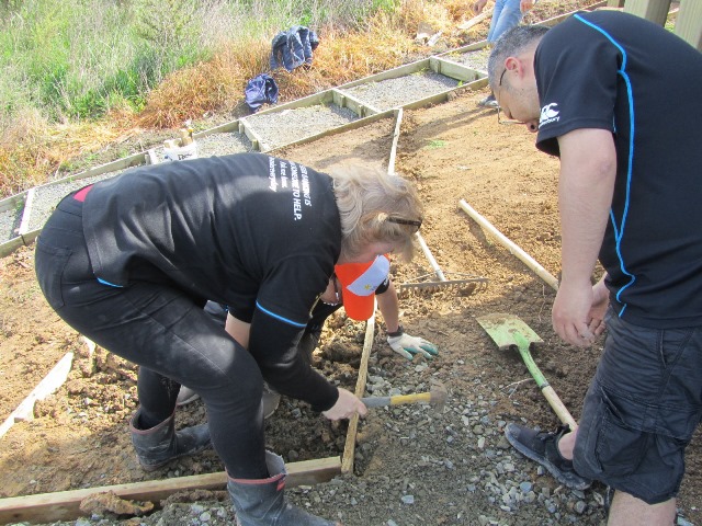 The entire group got together at the end of the day to spread a layer of gravel on some of the newly completed track sections to finish them off and make them easy to use in all weather. We went down to the car park and filled buckets with gravel.