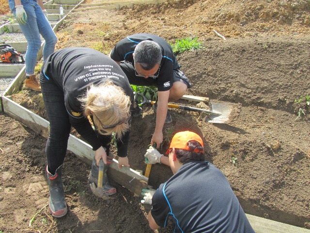 Today a group of veteran CUE Haven volunteers from ANZ accomplished an amazing amount of work while enjoying a fantastic spring day outdoors.