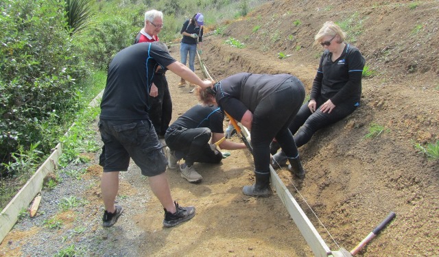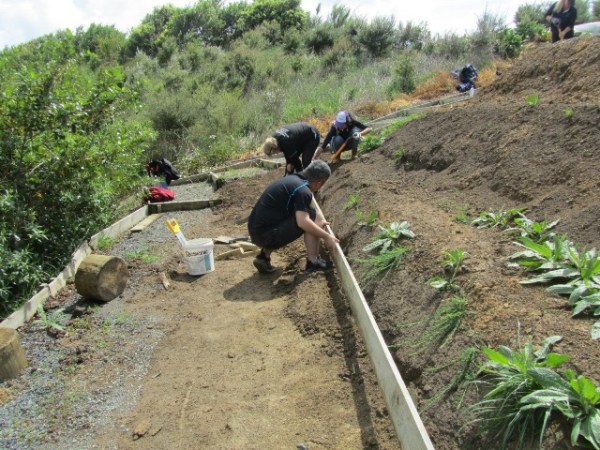 We are planning to install some seating in the area in front of the viewing platform and wanted to build a short track to connect that area with the main walking track to make it easy for visitors to access the area. One team went to work digging out the new track.