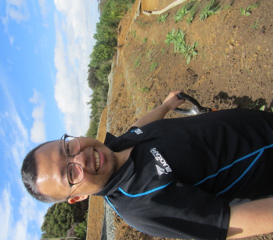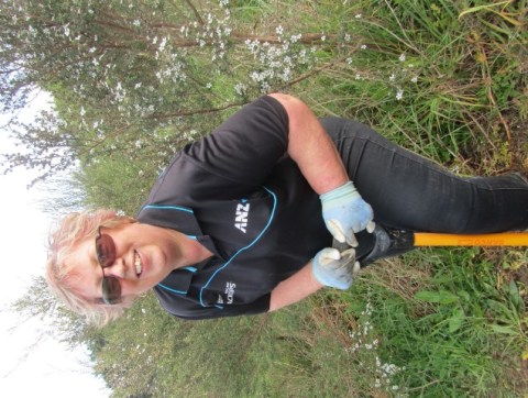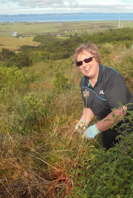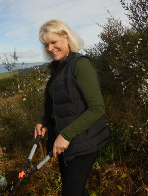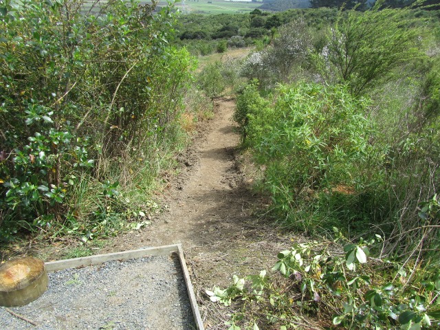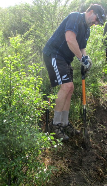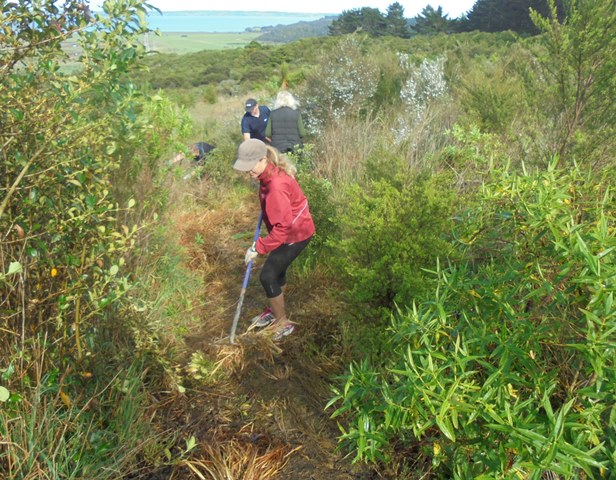 We wanted to join up the main walking track up to the platform with another small track which will provide visitors with a shorter alternative access to the platform area. The route through the bush had been previously marked out and sprayed and the first task today was to clear the grass and weeds to create the track. The job involved a lot of trimming and digging.