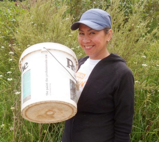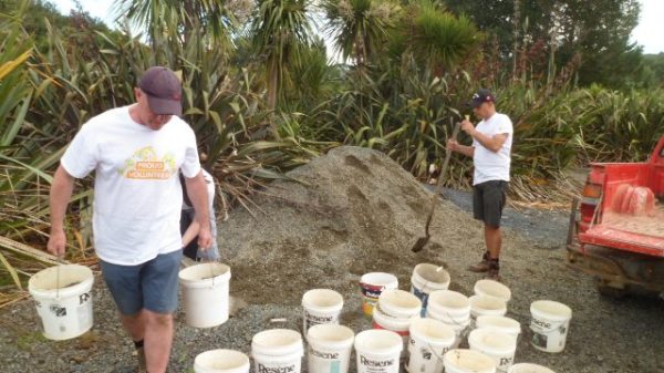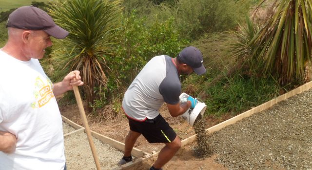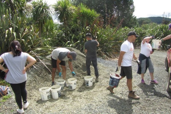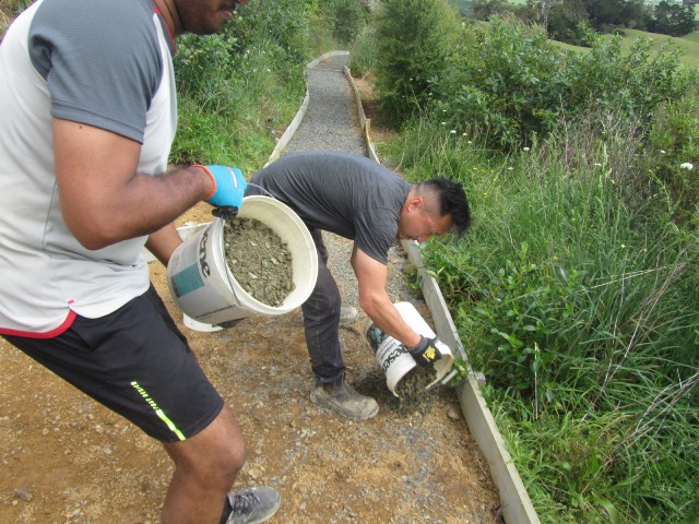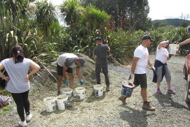 At the end of the day all of the teams came together to help spread a layer of metal on the new walking track sections. We loaded up buckets of gravel in the car park and drove them up as close to the track site as possible.
