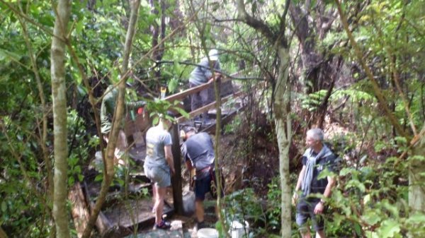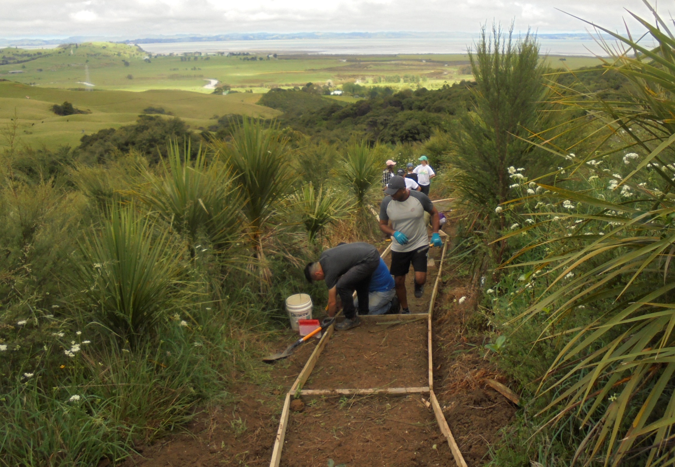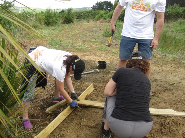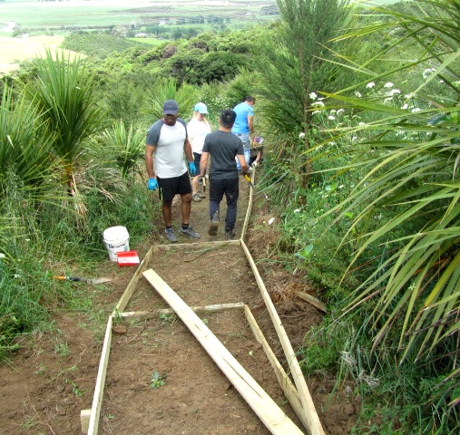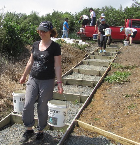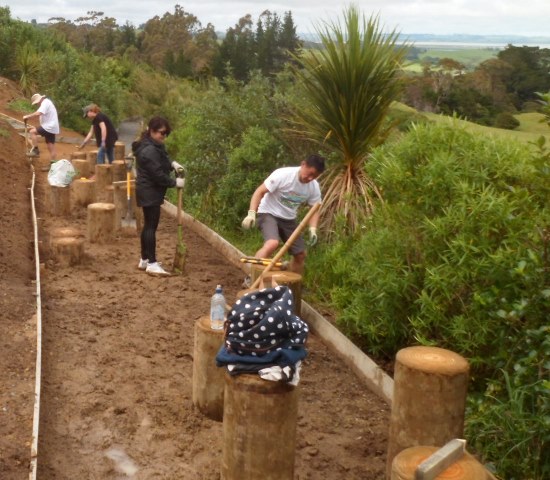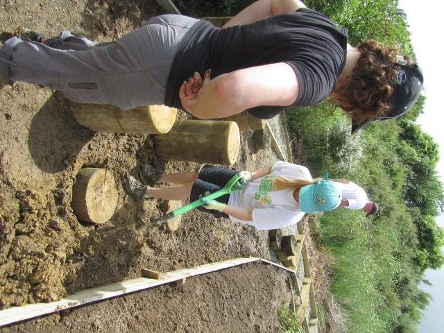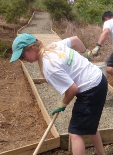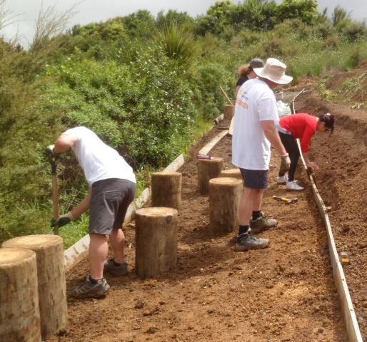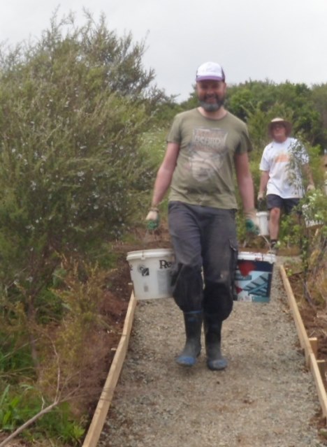 The plan for the day was to continue to work on the walking track approaches to the viewing platform, but because of the size of the group and the fact that they have had a lot of experience at CUE Haven, we broke the group into several teams and tackled a variety of other tasks as well. Most people worked on the walking track and over the course of the day, people moved among teams.