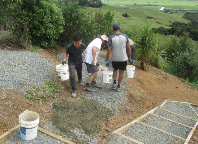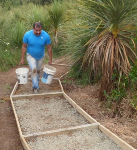 The team did such a great job with the railings that we asked them to undertake another big challenge. We have installed a gate at the bottom of the main race in order to prevent visitors from driving up in the forest reserve. However, we wanted to create a way for visitors to walk up around the gate.