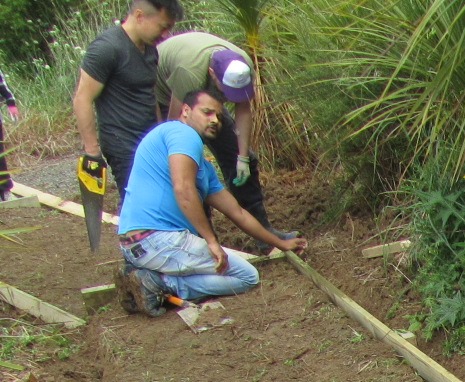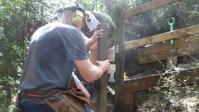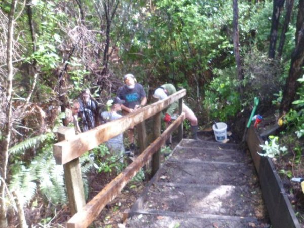 Last year we started installing some railings on a set of curved steps that connect the main walking track with a side track near the stream. We haven’t been able to finish the railings because we needed another support post and we asked a team to tackle the challenge.