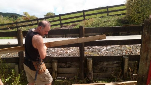Our friend Lyall has been working on a project to turn some of the off cuts of the platform foundation poles into seats for a long section of track in front of the viewing platform. The plan is for three groups of seats arranged in the shape of matau, the Maori name for fish hook. The matau has significant symbolism to Maori because of its relationship to the sea and it represents strength, prosperity and abundance and respect for the sea and a safe journey.
