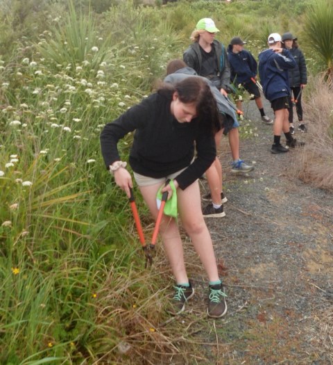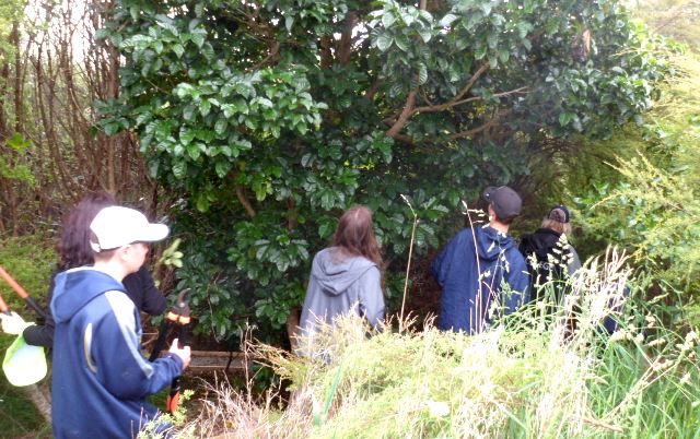 As part of their end of year Careers week activities, Year 10 students at Orewa College north of Auckland, can to select from a variety of possible activities, and seven students chose to come to CUE Haven to help us with our summer maintenance work and to learn a little bit about forest restoration and New Zealand plants and animals.