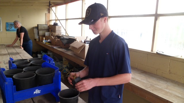 The bigger pots will give the seedlings room to grow until they are big enough to be planted in the field as part of our restoration enrichment plantings.