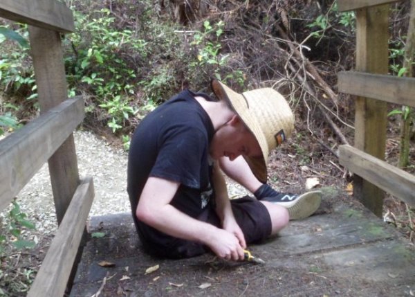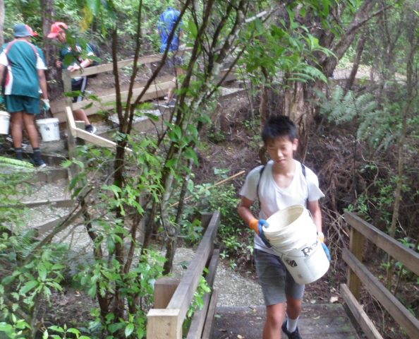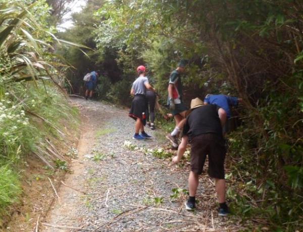 This time of year, our highest priority is walking track maintenance work – this includes trimming back overhanging vegetation along the track and upgrading and fixing the actual tracks. We asked the group to help us out with trimming some vegetation on a long track section and then putting some gravel on a section of track that had been upgraded this spring.