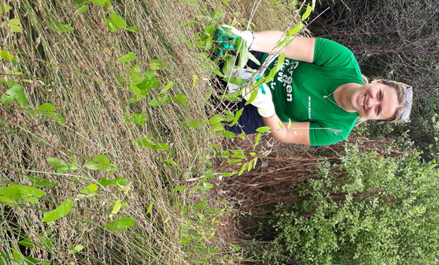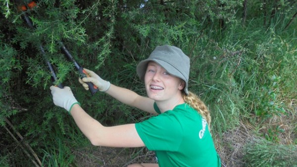 It didn’t take long for the team to finish off two long sections of track. While most of the group worked in the field, two people stayed back and did some weeding around the cottage and in the wetlands.