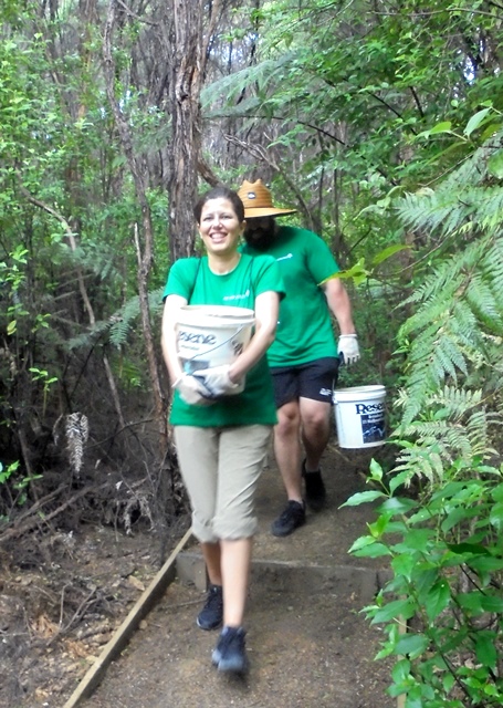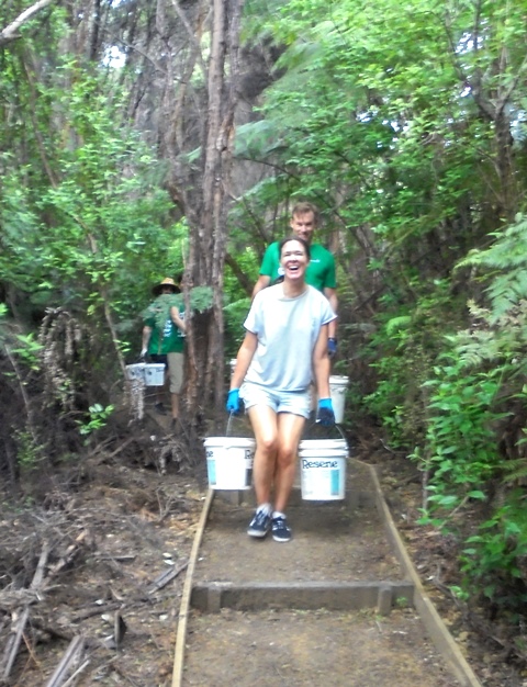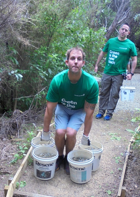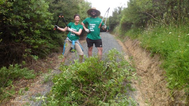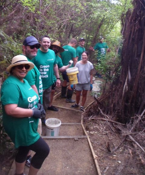 Air New Zealand Greenteam members have been volunteering at CUE Haven for years and we were very happy when the staff of the procurement department offered to spend a day helping us with some track maintenance work.